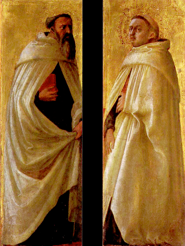 1426. Каждая по 38 x 12,5 см. Дерево, темпера, позолота. Мазаччо. Музей Саатлих, Берлин.